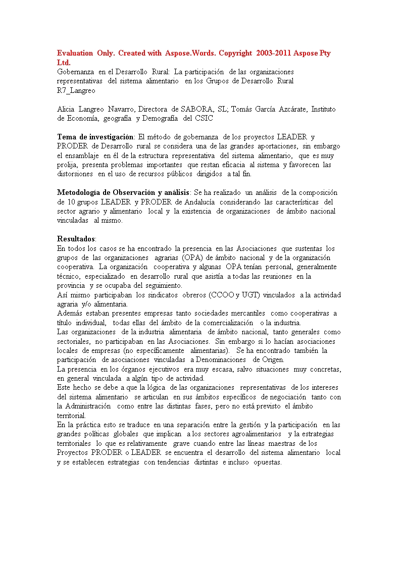 Gobernanza en el Desarrollo Rural: La participación de las organizaciones representativas del sistema alimentario en los Grupos de Desarrollo Rural R7_Langreo